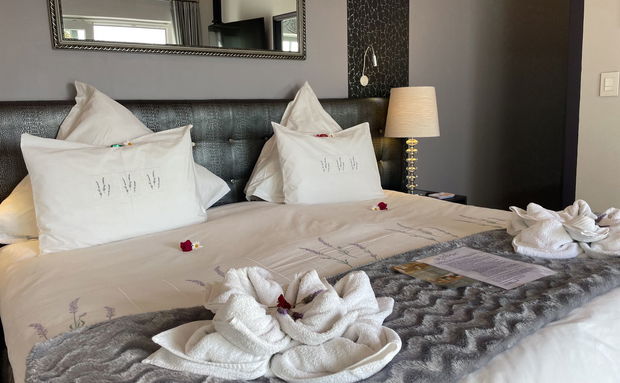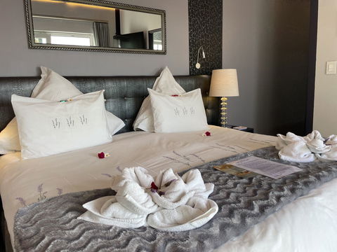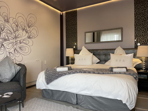 Im Ostflügel des Farr Out Gästehauses wartet das großzügige Doppelzimmer Black Mussel auf Euch – wahlweise mit King-Size-Bett oder zwei Einzelbetten. Aus Eurer privaten Terrasse mit Strandkorb habt Ihr nicht nur Fynbos satt fürs Auge, sondern auch die allerbesten Plätze für Sonnen- und Mondaufgänge. Romantik inklusive. 💫